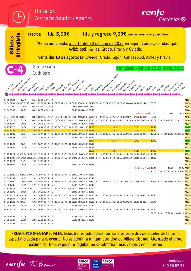 Como en anteriores ediciones, se han programado servicios especiales con salida desde Oviedo, Avilés y Gijón.